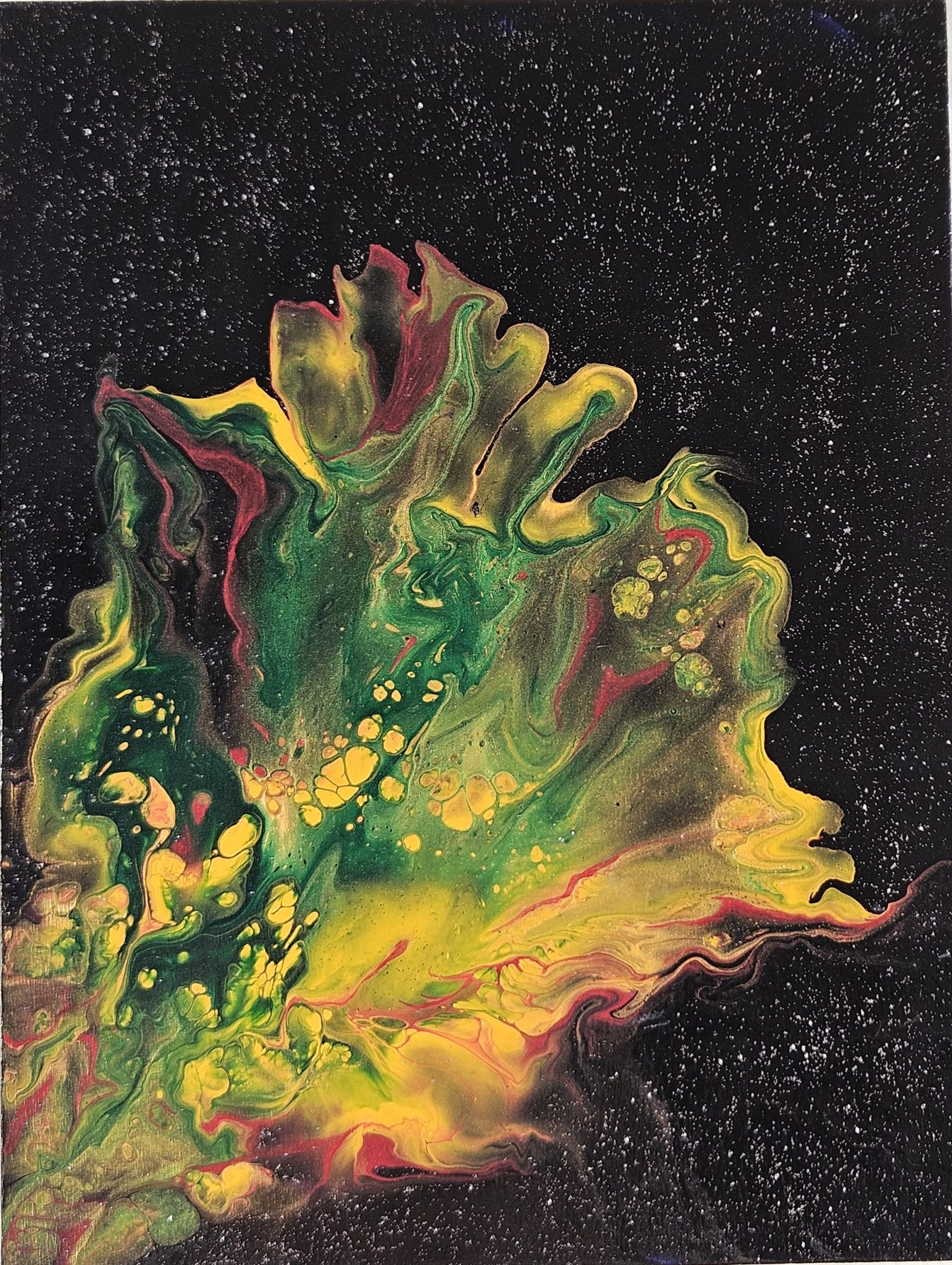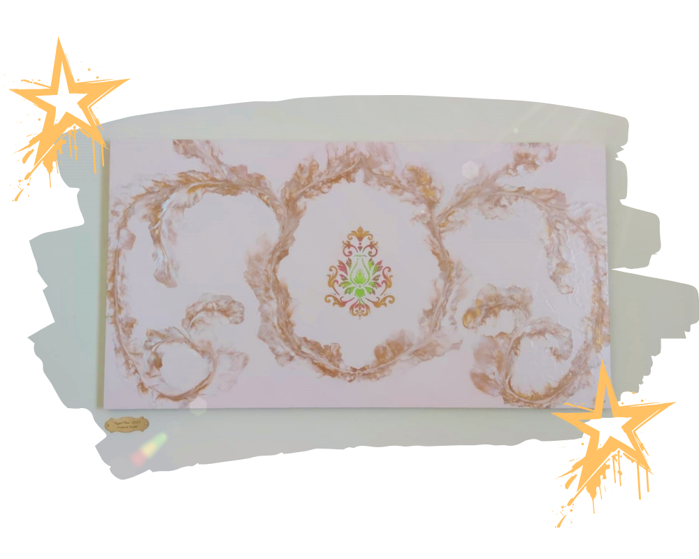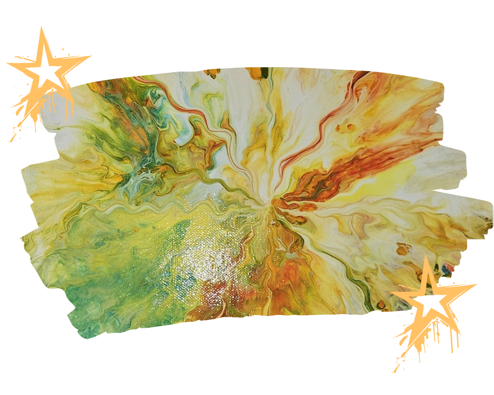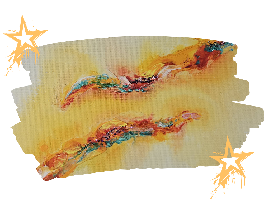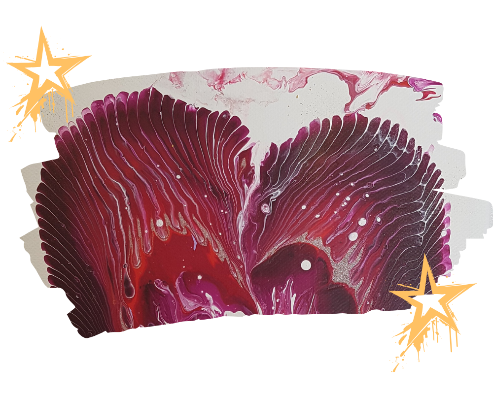 Hierbei arbeite ich mit unterschiedlichen und verschiedensten Materialien und Techniken, wie z.B. Pouring, Acryl-Malerei, Strukturpaste und erstelle damit zeitgenössische sowie fantasievolle Werke. Für meine Kunstwerke habe ich oft Eingebungen, die unvorhersehbar und meist in Momenten der Stille erscheinen.