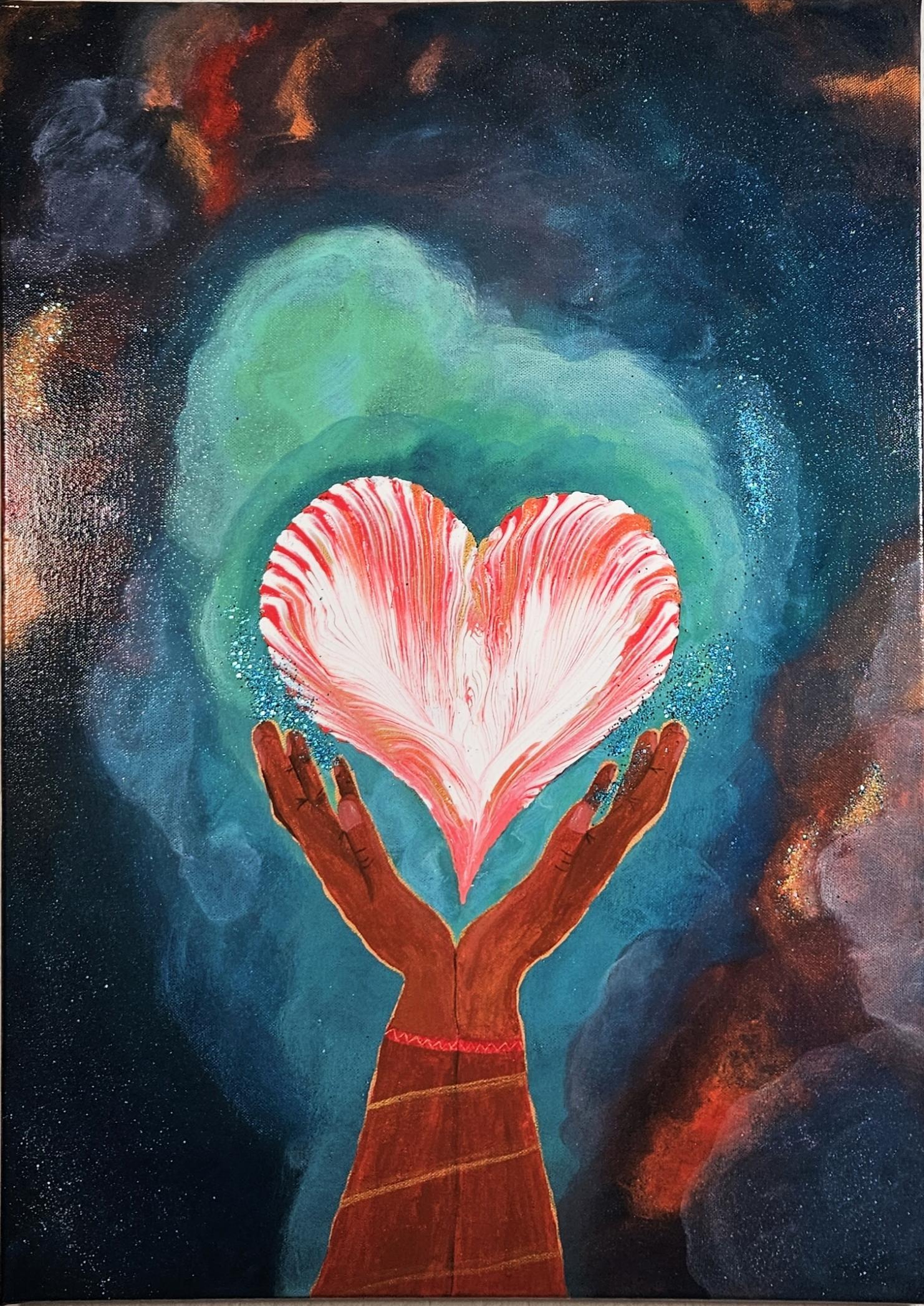 Im Zentrum des Werkes steht die bedingungslose Liebe – für die Menschen, die uns am wichtigsten sind, und für das Leben selbst. Es lädt den Betrachter ein, sich für Verbindungen zu öffnen und die Schönheit des Gebens und Empfangens zu erkennen.„Open Heart 2024“ ist ein kraftvolles Symbol für ein Leben mit offenem Herzen – voller Hingabe, Mut und Liebe.