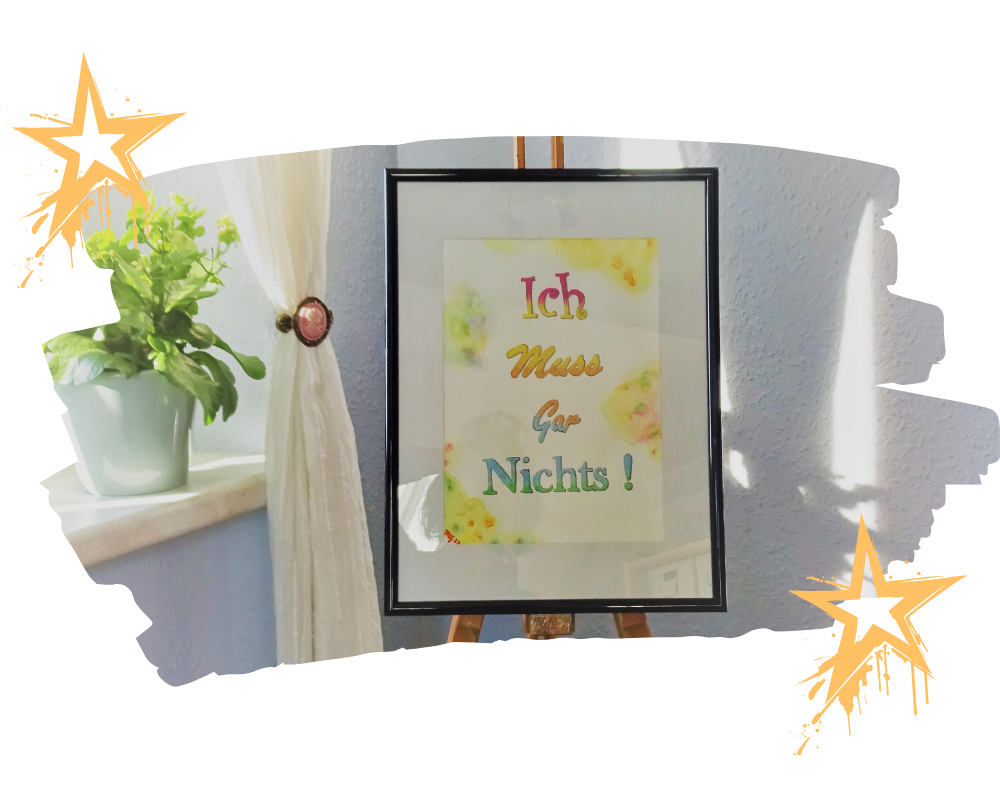 Im Anschluss sende ich Ihnen einen ersten Entwurf des Kunstwerkes (inklusive Farbpalette). Außerdem teile ich Ihnen zur Orientierung die Zeitspanne mit, in der das Werk gefertigt wird.